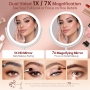 The RM601 Led Vanity Mirror features a sophisticated dual-lens system designed for professional-grade grooming. Users can seamlessly transition between a high-definition 1X flat lens for full-face visibility and a high-performance 7X magnifying lens, which allows for surgical precision during intricate makeup application, skincare routines, or eyebrow shaping.
